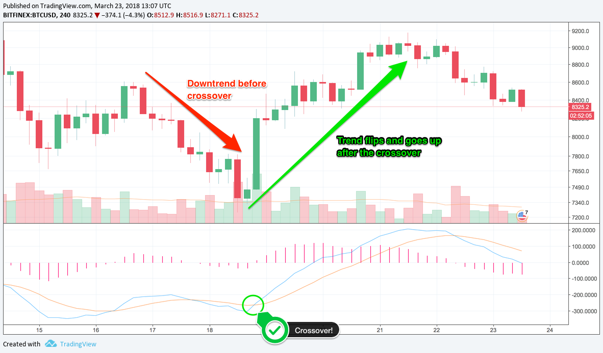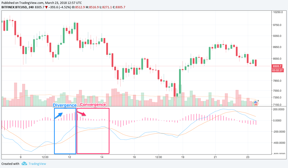 When a new trend is forming, the MACD lines will converge, eventually theyโll crossover (indicating that the trend has reversed), and the lines then start to diverge.
