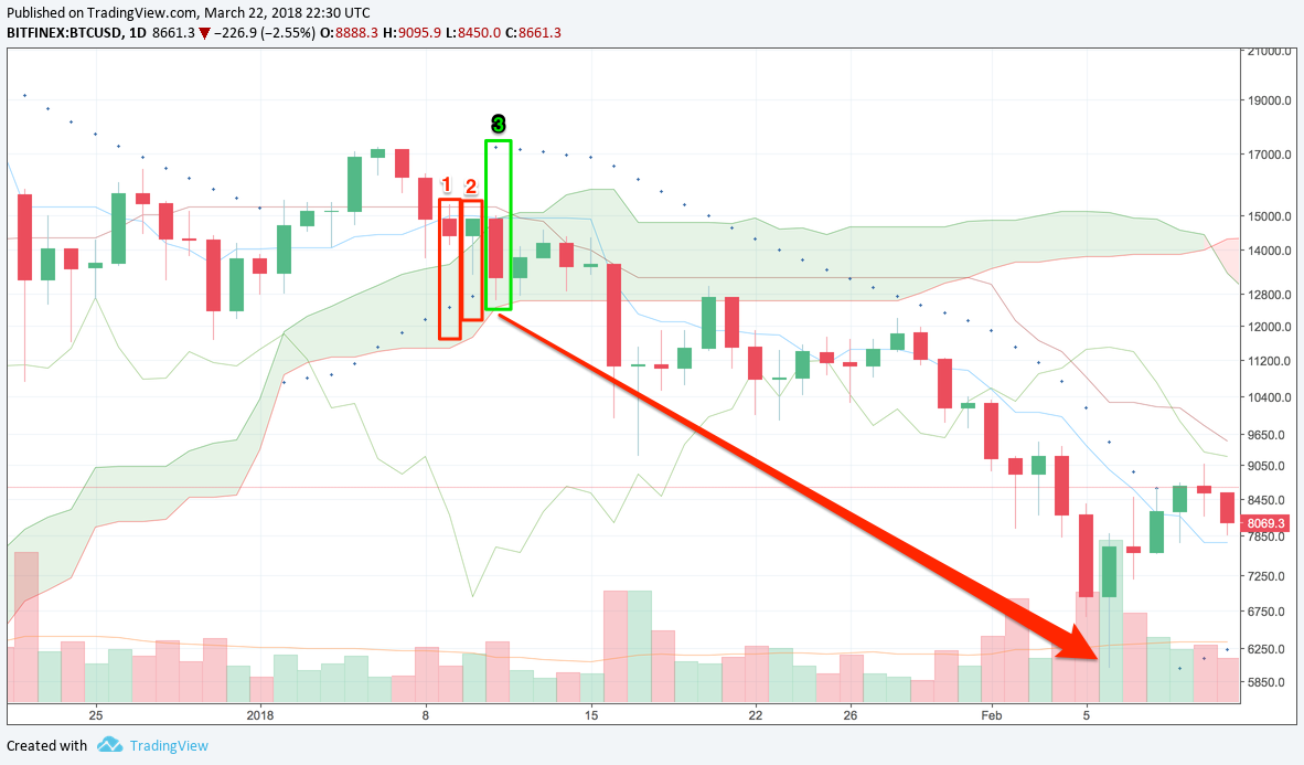 » Line crosses the price in a top-down direction = the price is likely to go down.