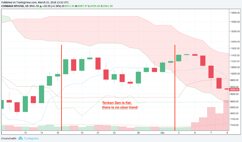 » The price closed below the Kijun Sen (blue line) = price might go lower.