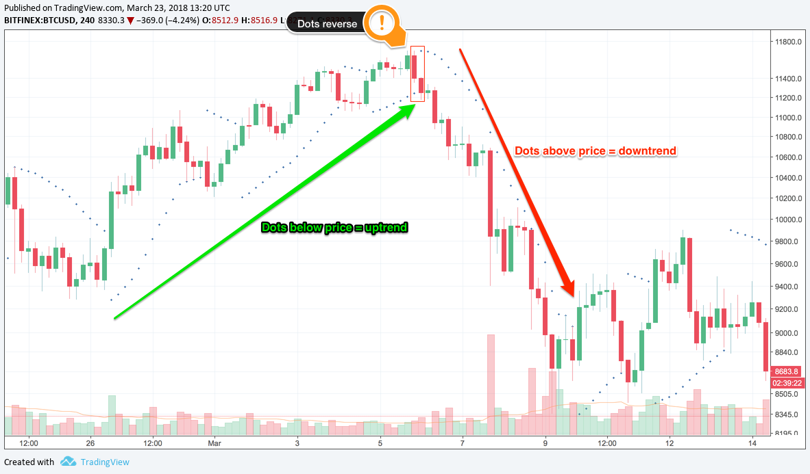 โ ๏ธ Do not use Parabolic SAR in a ranging market (price is moving sideways). Lot of noise. Dots flip from side-to-side = no clear signal.