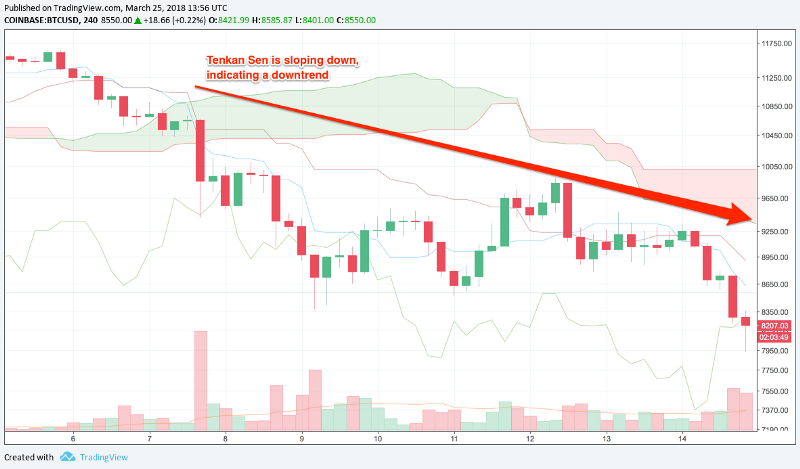 » The price closed below the Kijun Sen (blue line) = price might go lower.